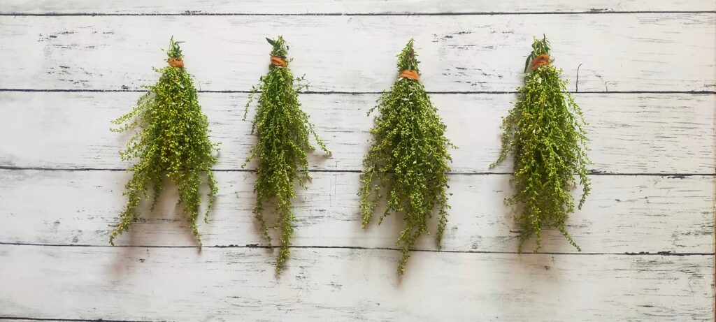 日光で軽く乾燥させる(草ってどれだけがんばって摘んでも、乾燥するとびっくりするほど少なくなるんです^^;)