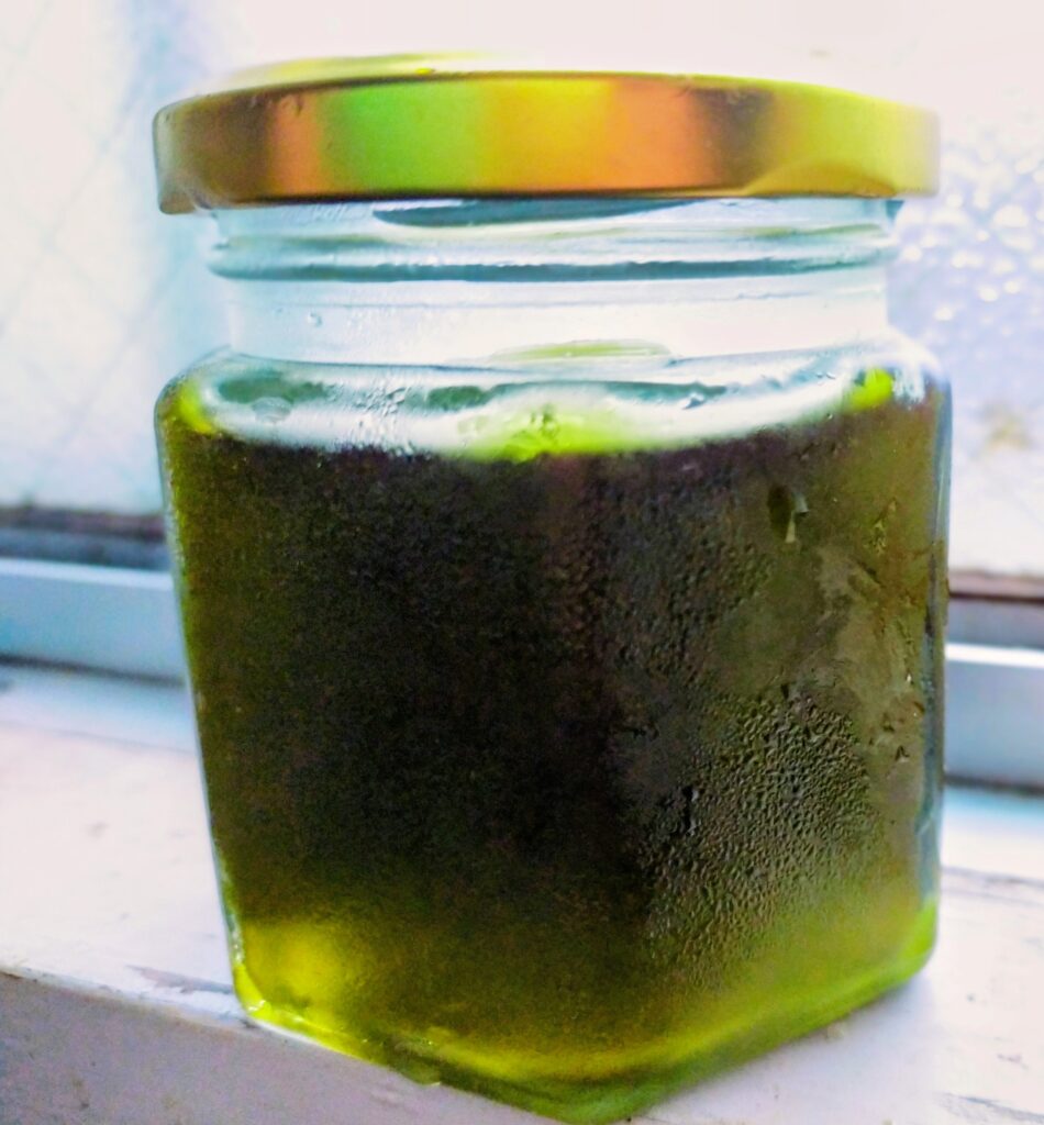 きれいな緑色のオイルの出来上がり!香ばしくて、いい香り。